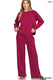 This luxurious cabernet-colored lounge set features a premium soft fabric construction perfect for ultimate comfort and relaxation. The set includes a relaxed-fit long-sleeve pullover sweatshirt paired with wide-leg palazzo-style pants. Made from high-quality materials that provide breathability and durability, this coordinated two-piece set offers versatile styling for home lounging, casual outings, or sleepwear. The rich wine-inspired cabernet color adds sophistication while the comfortable elastic waistband and loose-fitting design ensure all-day wearability. Perfect for those seeking both style and comfort in their casual wardrobe.