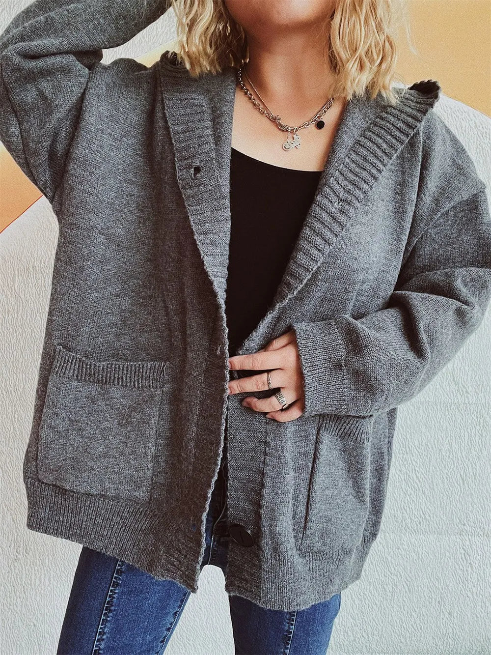Dropped Shoulder Long Sleeve Hooded Cardigan