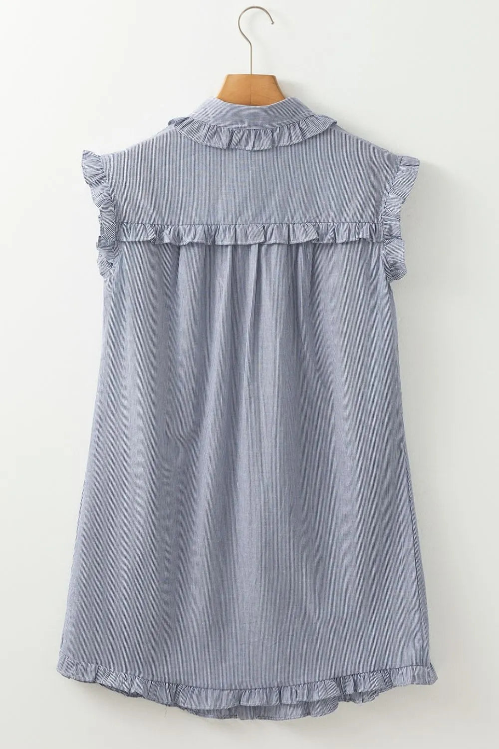 Striped Ruffled Cap Sleeve Button-Up Mini Dress – Sweet & Structured | MYN2O