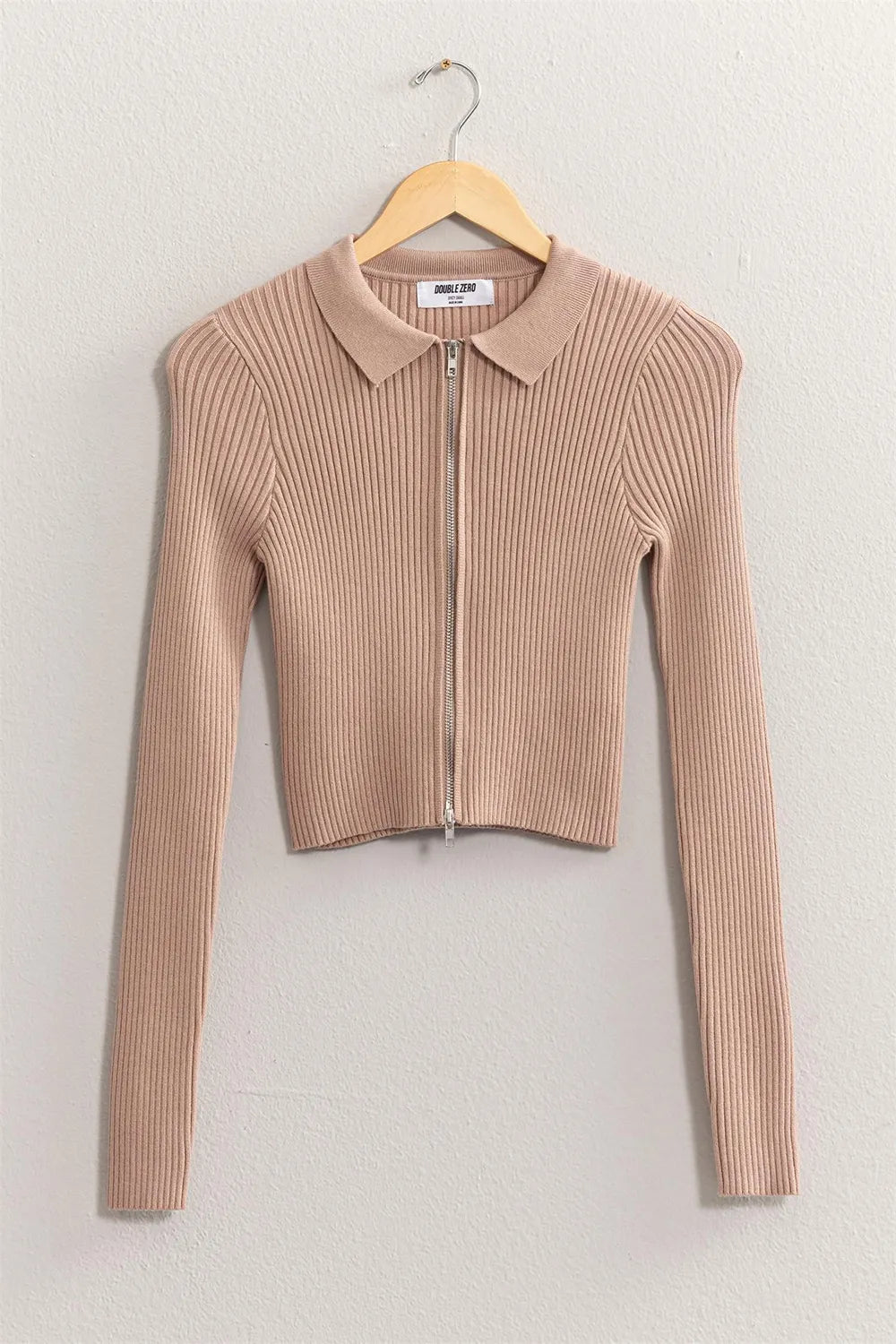 HYFVE Ribbed Double Zip Cropped Cardigan
