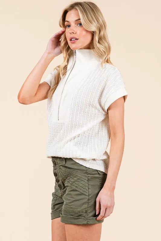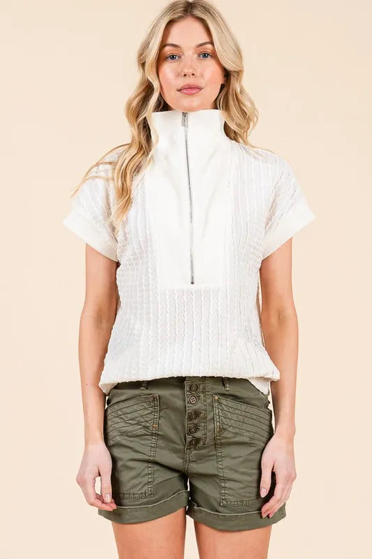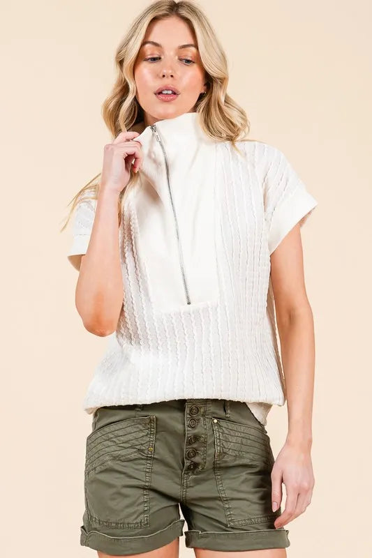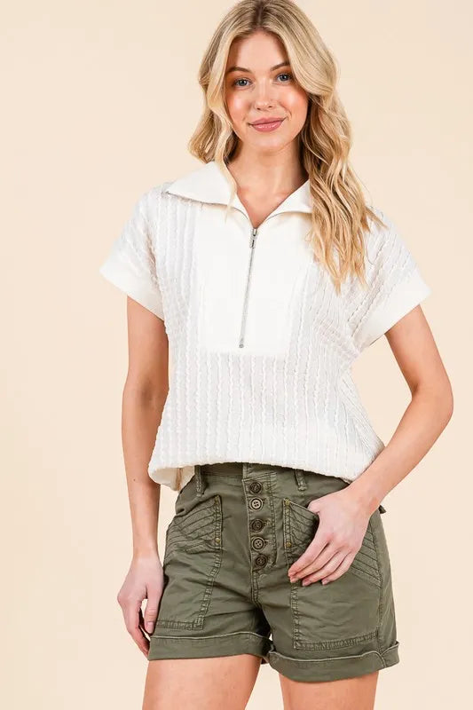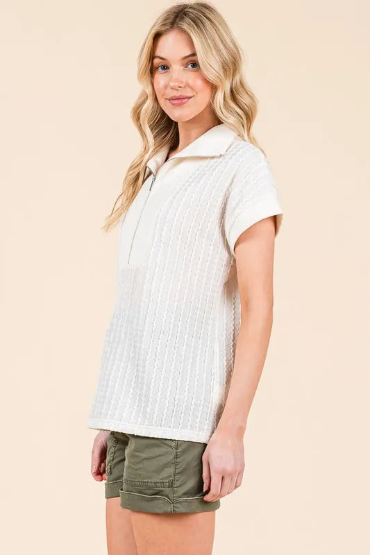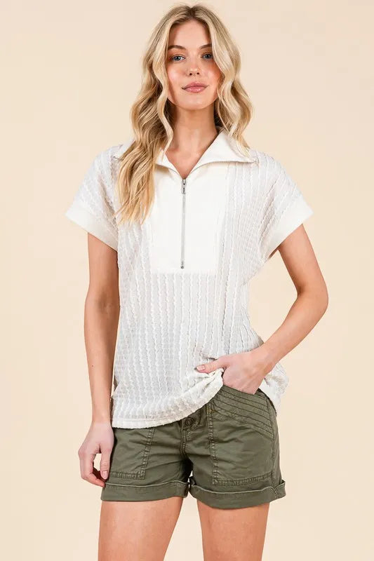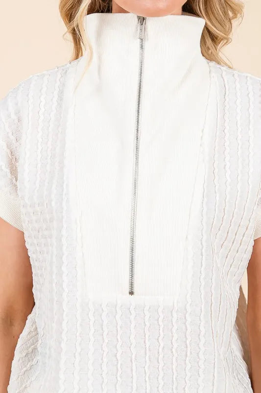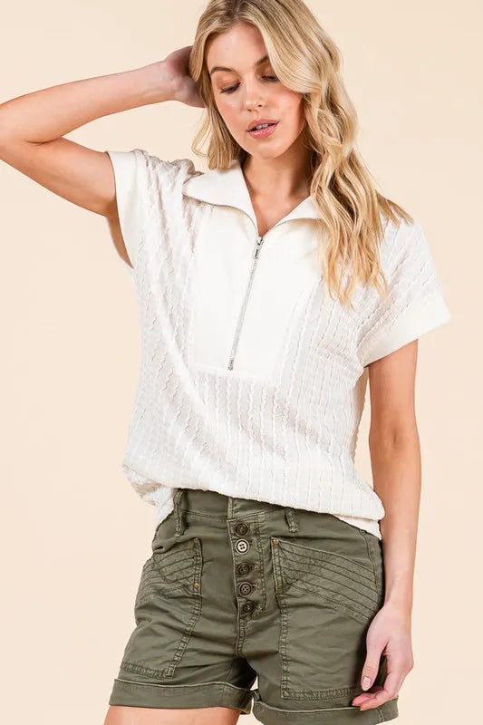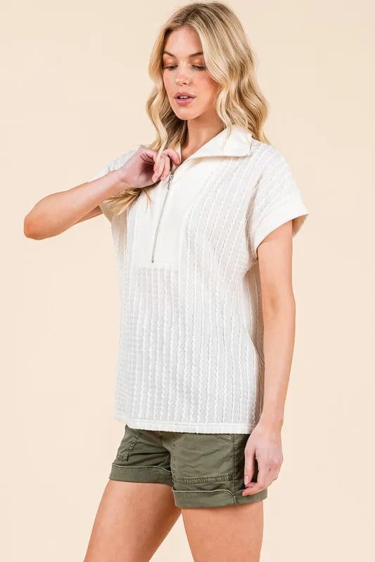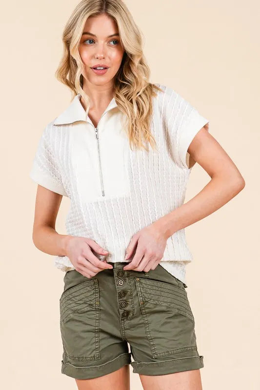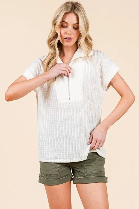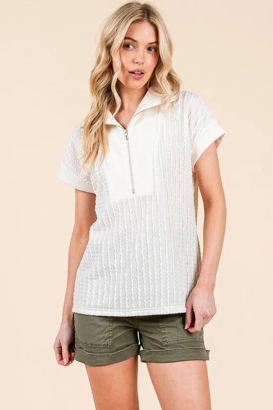 Lime N Chili Half Zip Contrast Top – Sporty, Textured & Stylish | MYN2O