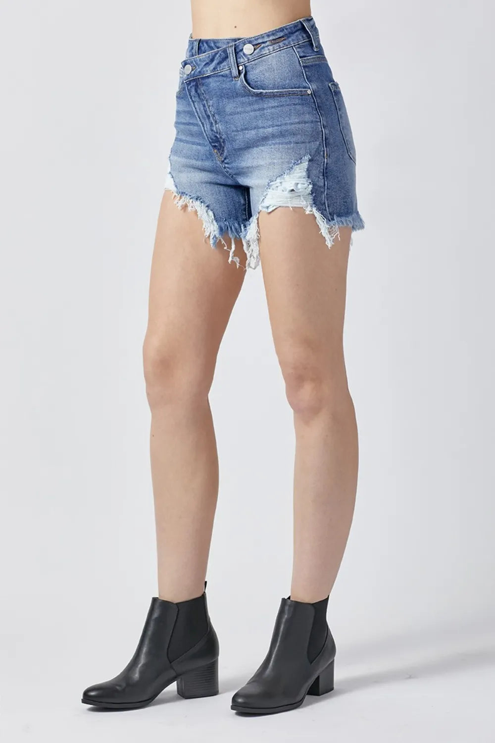 RISEN Asymmetrical Waist Raw Hem Denim Shorts – Edgy & Modern | MYN2O