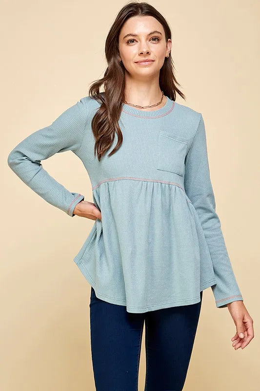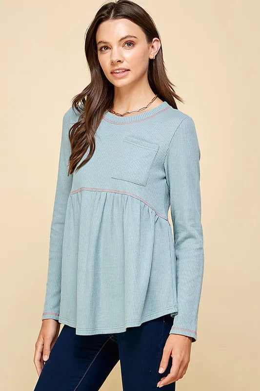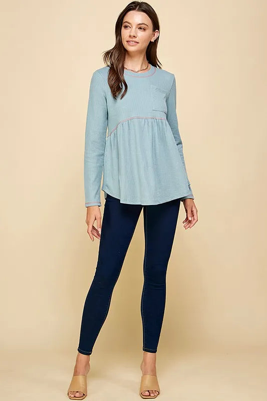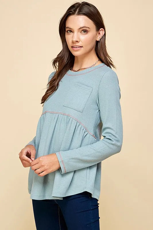 Lime N Chili Waffle Knit Babydoll Top – Casual & Cute with Pocket | MYN2O