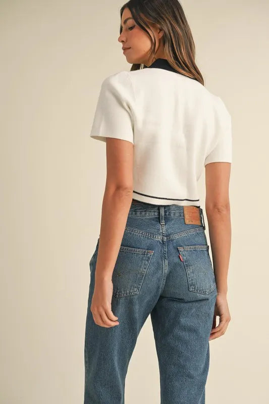 MABLE Button Down Contrast Collared Knit Cardigan