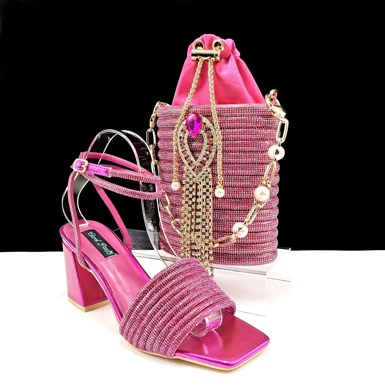 Square Toe Chunky Heel High Heels 8cm With Cylinder Handbag Shoes Bag Suit