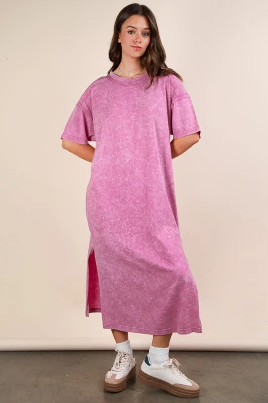 VERY J Plus Size Mineral Washed Casual Comfy Midi Dress – Effortless Relaxed Style – MYN2O