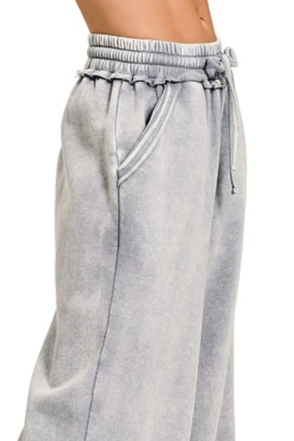 Zenana Acid Wash Fleece Palazzo Sweatpants with Pockets – Cozy Relaxed Fit – MYN2O